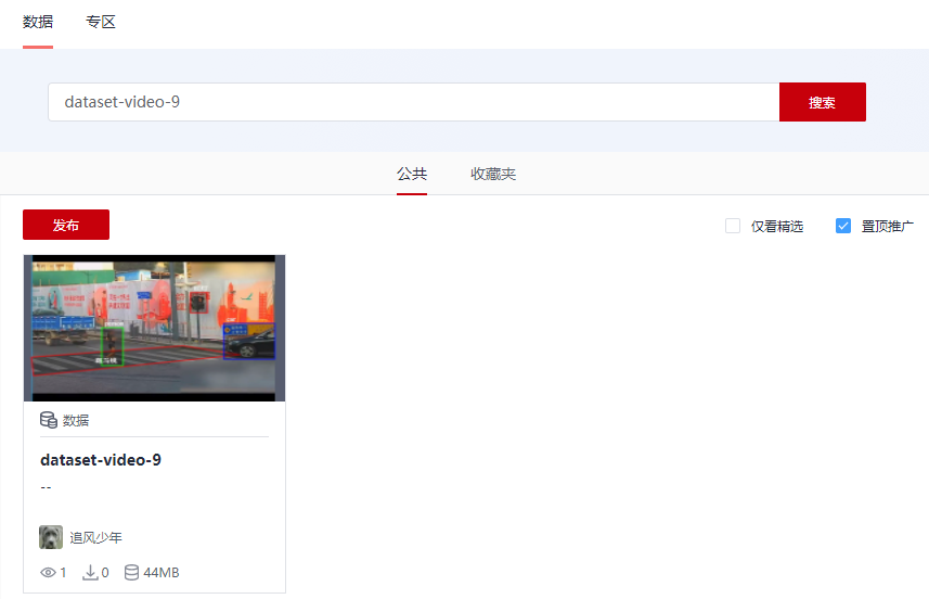 首先进入AI Gallery,选择数据,然后搜索dataset-video-9