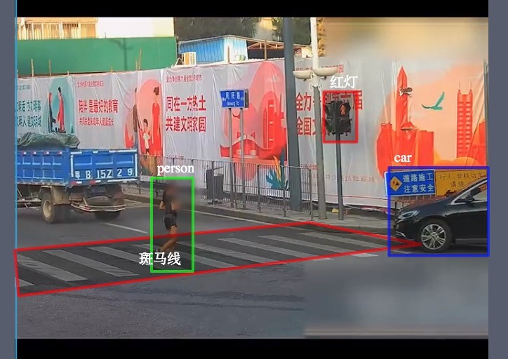 - 示例1:对交通违规情况所在帧进行标注:斑马线车辆未礼让行人