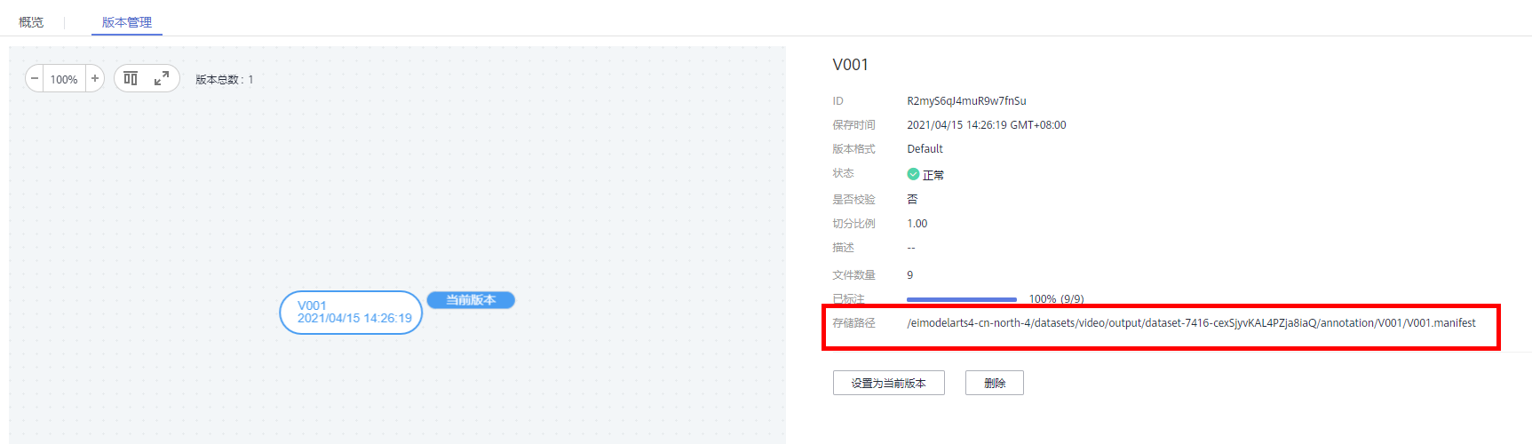 由于数据集是基于OBS目录管理的,发布为新版本后,对应的数据集输出位置,也将基于新版本生成目录。