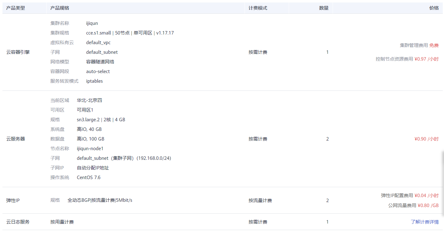 1是服务选型,这里注意版本,k8s一般3个月更新1次版本,CCE创建只支持最新的2个版本,所以教程上的版本可能会过时