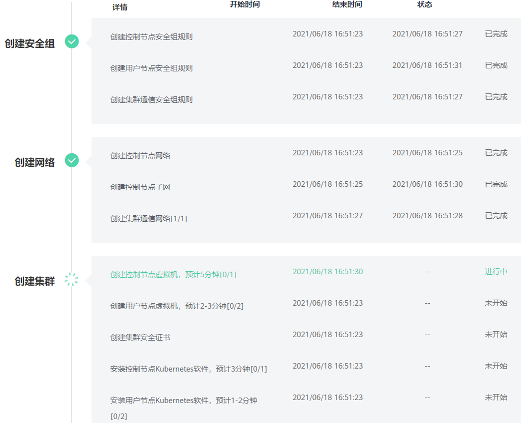 这里有2个图,一个是购买的规格,一个是提交后的创建过程