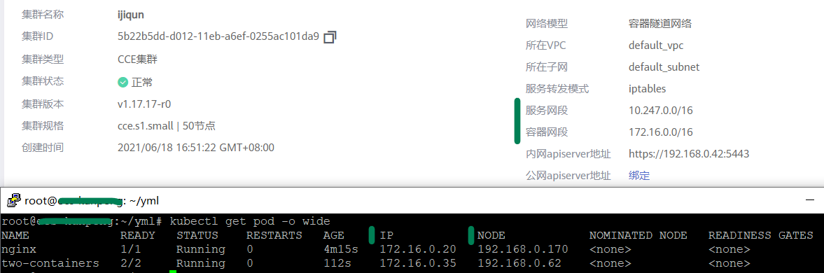 1apply 2get pods/pod 查看two-containers这个POD运行所在的NODE的IP