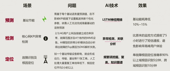 这样看来,无论是从效率还是效果这两方面去考虑,都有一个诉求就是引入人工智能去解决问题,使能网络运维的预测、分析、决策的自动化闭环。