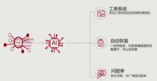 除了展示位,推理结果必须能够帮助进行故障的恢复。现阶段一般是对接现有的系统,比如工单系统(需要工单邮箱的人要去处理)、自动回复和问题单。如果通过人工去对接,费时费力并且容易出错。因此机器人流程自动化,也就是RPA服务,水到渠成。RPA服务可以完成数据的对接、搬运及工单的发放等等,减少人力投入,降低出错成本。