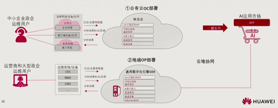 针对一些最典型的场景,华为云AIOps把编排能力都已经提前准备好,也即,有十多种开箱即用的App,如园区网络、DC网络、IT应用、运营商网络等等场景全覆盖;灵活部署,支持公有云、HCS部署、On Premise部署、及云地协同等;开放生态,支持合作伙伴开发行业App,并将AI应用发布到AI市场,合作共赢,共建网络AI生态。