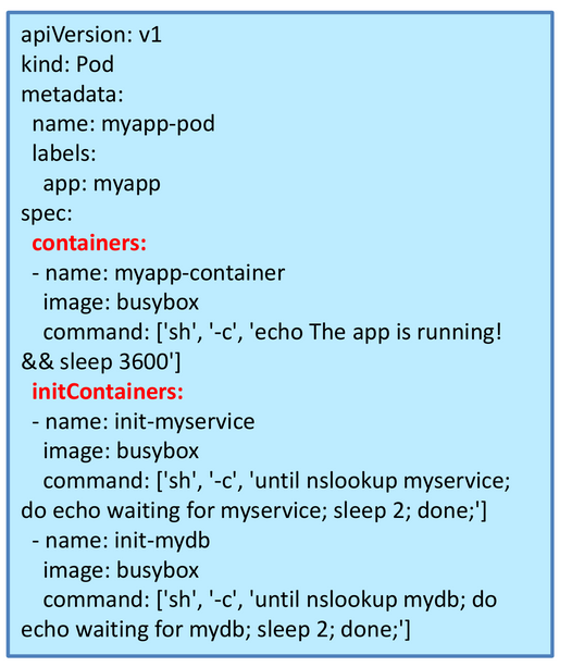 InitContainers:初始化容器,一般用于服务等待处理以及注册Pod信息等