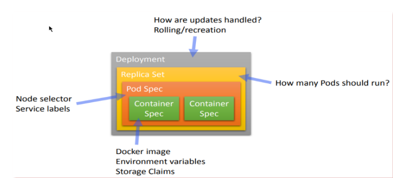 Kubernetes Deployment提供了官方的用于更新Pod和Replica Set (下一代的Replication Controller)的方法,您可以在Deployment对象中只描述您所期望的理想状态(预期的运行状态),Deployment控制器为您将现在的实际状态转换成您期望的状态;