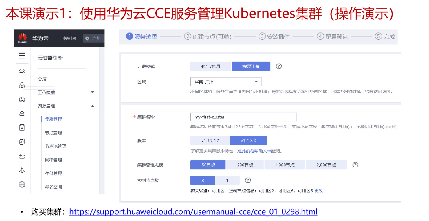 购买集群:https//suport.huaweicloud.cn/usermanual-cce/cce_01_0298.html