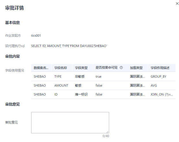 - 处于保护作业发起方的业务机密性, 这里会屏蔽所有和该审批者无关的字段信息,例如ID字段的描述中, 会屏蔽该字段具体和哪个发起方字段做JOIN计算。