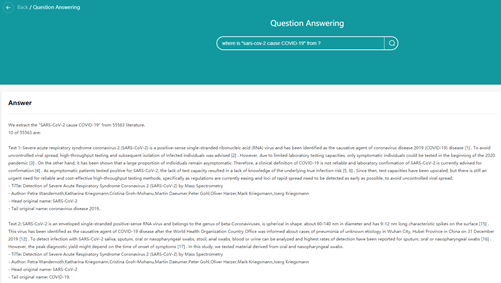 为了解决这一问题,华为云知识计算团队自研医学领域AI算法模型,并结合华为云知识图谱云服务,实现从公开发表的新冠学术文献及公开数据库中快速构建新冠科研知识图谱,并提供知识搜索、可视化分析、知识问答及智能关系预测等应用,协助科研人员更快速、有效的开展抗疫科学研究和药物研发筛选。