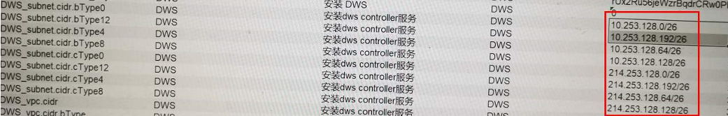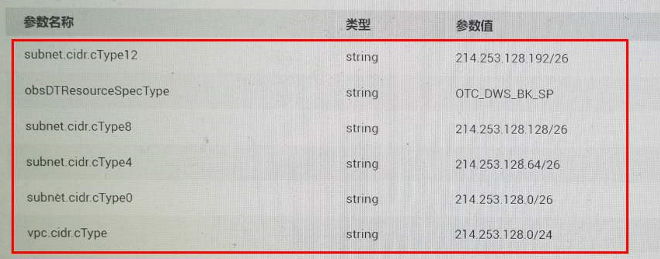 并查看相关的代码得出结论,HCSD代码中设置了DWS分配的资源租户vpc子网掩码为24位,去除网络号后可用的为26位掩码。导致网段生成有问题,此处需要手动修改cdk相关参数,重新下发dws集群