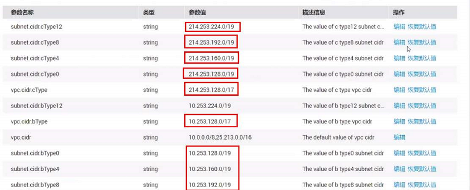 vpc.cidr.bType,vpc.cidr.cType 按规划值填写