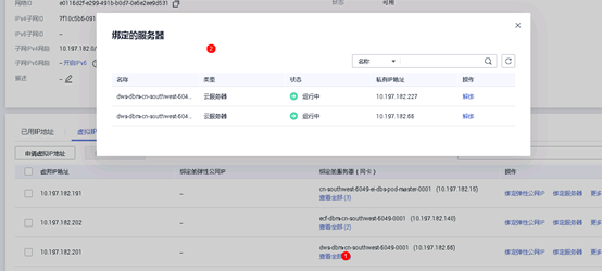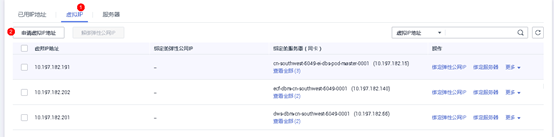 5). 申请完虚拟ip后,绑定之前创建的dbm数据库主备机器;绑定完成可以检查一下;