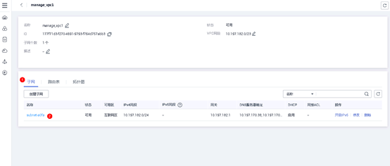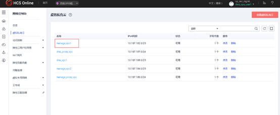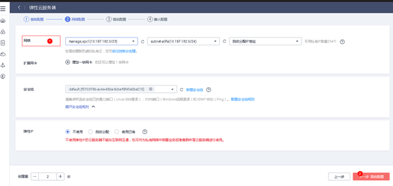2). 选择之前创建ecs时的网络manage_vpc1;