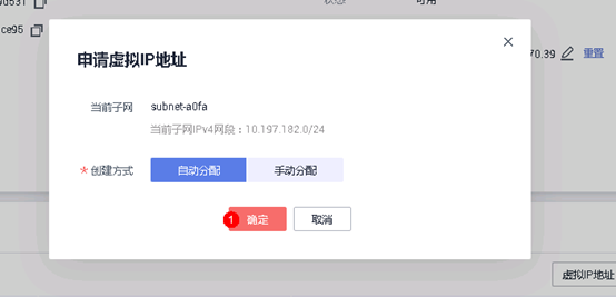 4). 虚拟ip点击申请虚拟ip地址,自动分配即可