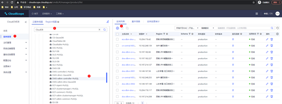 2). 完成订正后,进入服务管理,将机器挂到CLOUDDB/EI-DB/下对应分支上,如下所示;