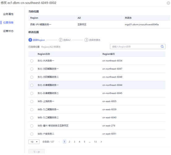进入CloudDBMgmt页面,选择数据库实例创建,选择部署的区域,对应的数据库类型;