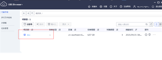 注:不建议桶名为dws,后续上传gsql工具也会创建dws桶