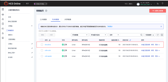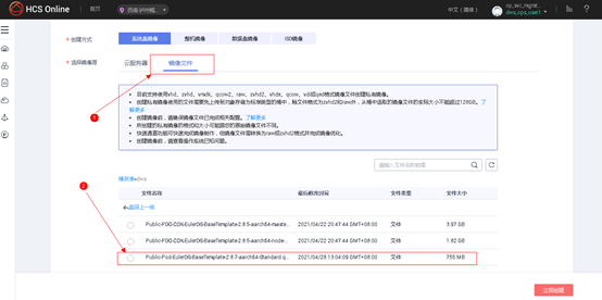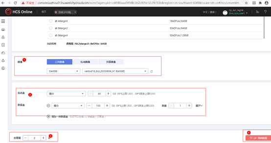 3). 根据部署指导手册,镜像没有特殊要求,选择系统盘和数据盘,一套dbm数据库需要主备两台机器;