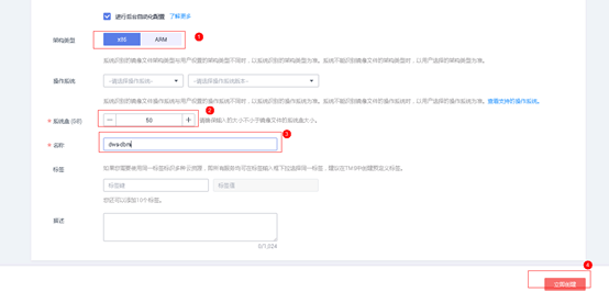 5).选择架构、系统盘大小、名称(没有标准,可以区分就好);