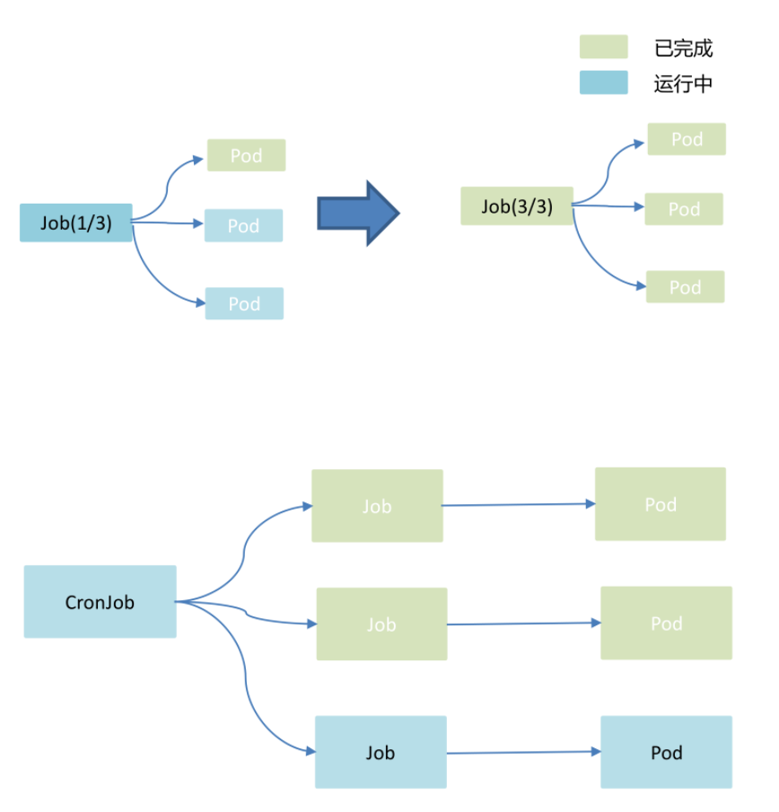 COMPLETIONS:显示已经完成的Pod数量,显示的字段为.status.succeeded