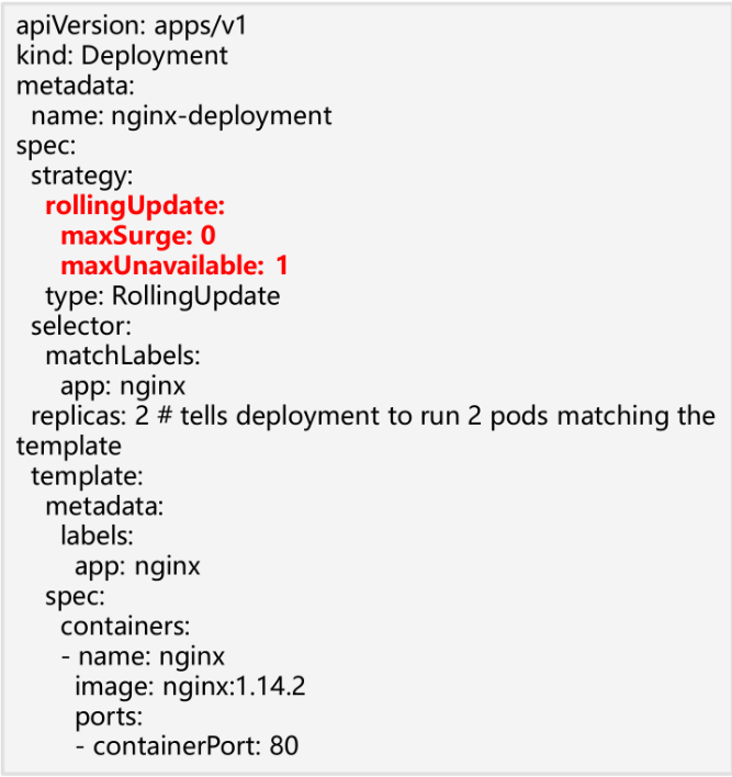 RollingUpdate:滚动升级策略中可以配置以下两个参数