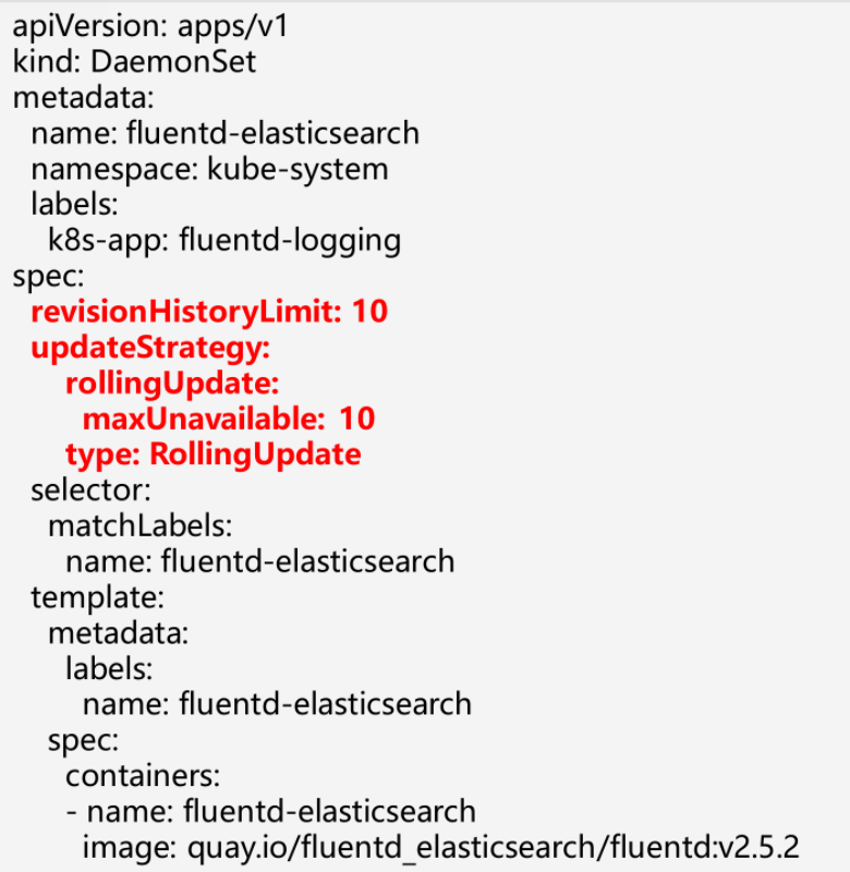 可以通过设置节点亲和性或者节点选择器来选择部分节点部署。合理设置DaemonSet的RevisionHistoryLimit,默认值为10