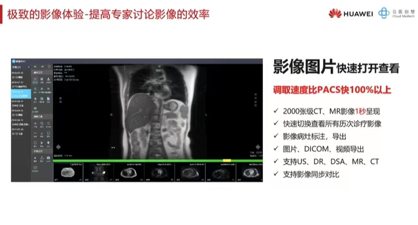 可以通过平台便捷分享患者信息,随时随地调阅直观、全面的诊疗信息,以及秒级查看影像原图,在面对重大疫情时,还可以助力医生高效展开无接触合作。