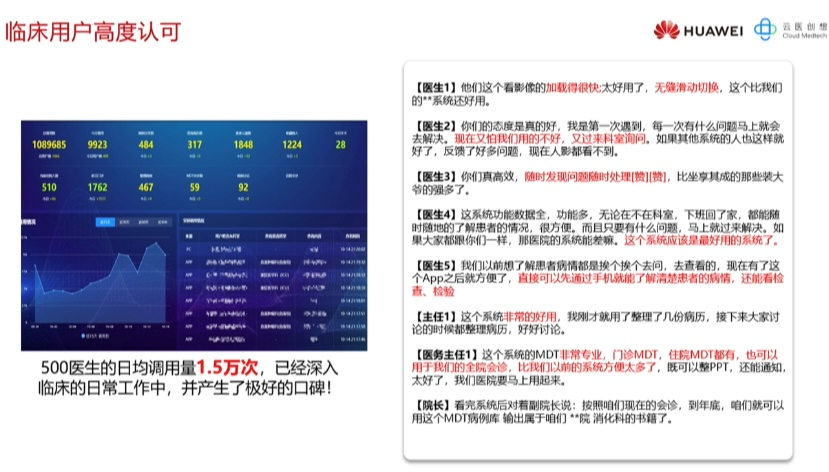 这个方案发挥了华为在音视频及视频会议上的硬件优势以及云医创想在临床医学协作软件上的领先优势。
