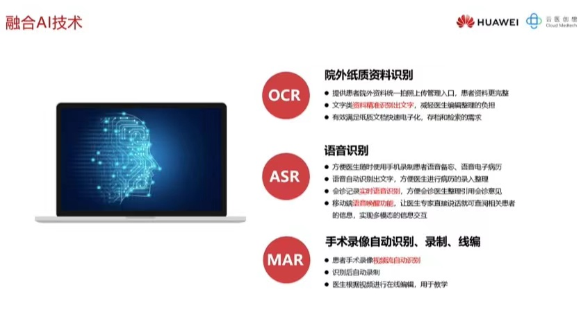 协作平台还融入了许多AI技术。包括OCR、ASR 、MAR ,在院外纸质资料识别、各种语言识别、手术录像自动识别、录制、线编中发挥重要作用。