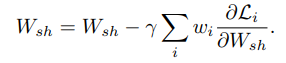 中每个任务的权重项w_i上。具体的,w_i的更新方式为: