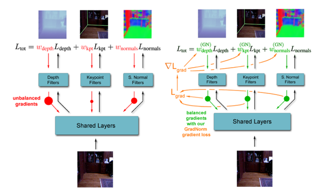 本次介绍方法Gradnorm,通过调整不同loss的数量级和学习速度来平衡多个任务的学习情况。