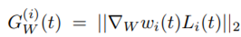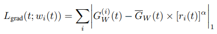 - Gradnorm通过数量级和学习速度两个方面来构造Gradient Loss,具体公式如下: