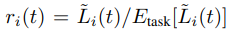 为第i个loss在t时刻的loss除以0时刻的loss,衡量第i个任务的反向训练速度,越小表示训练越快;