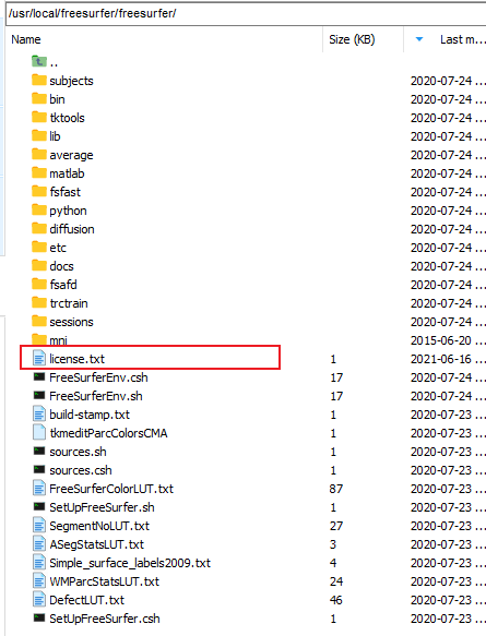 同时将证书放置在freesurfer下,注意目录结构,这里是/usr/local/freesurfer/freesurfer