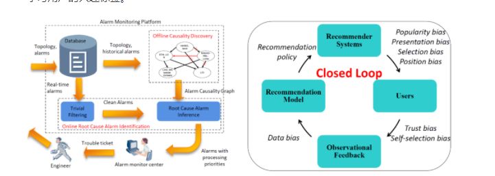 会议期间会议组委会,北京大学和华为诺亚方舟实验室共同组织了此次因果竞赛。此次竞赛分为两个赛道。赛道1的目标是从连续时间事件型数据中发现因果关系。事件型数据在实际应用中会经常遇到,例如监测电信系统是否正常运行的报警记录。学习报警之间的因果关系可以用来识别根因报警,从而帮助快速定位系统的实际故障。赛道2则关注用户的偏好预测。实际中,每部电影通常都会有一定的描述性标签。参赛者基于关联数据(电影的标签)和因果数据(用户标明他喜欢某部电影的原因标签)建模,并纠偏有偏的推荐数据(用户选择偏置、前序模型偏置等),学习用户的兴趣标签。