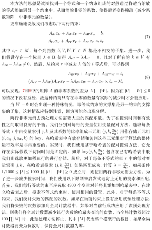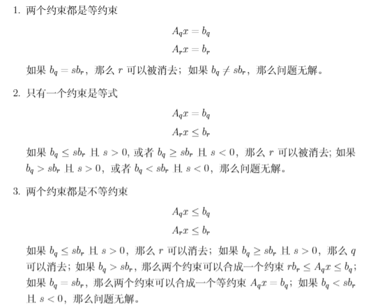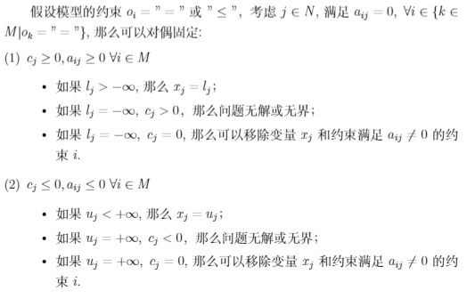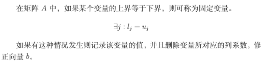 - 化约冗余约束,减少约束矩阵非零元素,提高稀疏度,减少问题规模,节省内存;