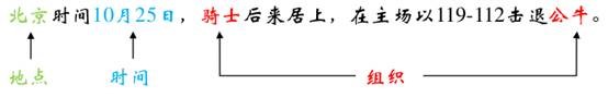 - 上下文区分类:即实体或者文本有歧义,需要根据上下文进行区分,例如图1中的“骑士”和“公牛”,你需要根据上下文判断这是两个球队“组织”。