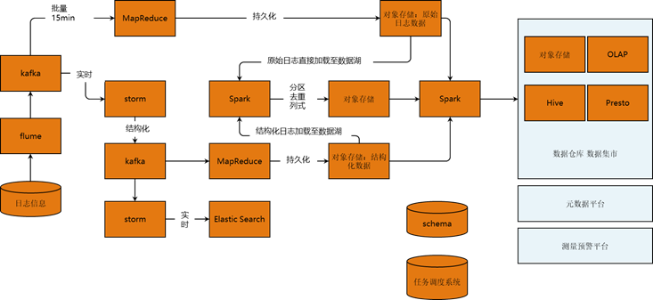 上图所示的是音视频行业比较常见的数据流程和大数据架构以及与之相配套的数据处理基础设施。