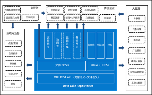 OBS作为华为云数据湖战略底座,有4个核心点: