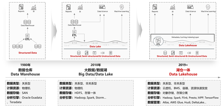 数据规模和复杂性的提高使得企业用户对数据处理分析的实时性和融合性提出了更高的要求,“湖仓一体”的发展方向开始出现,它打破了数据湖与数据仓库之间的壁垒,使割裂的数据得以融合,减少数据分析中的搬迁,实现统一的数据管理。