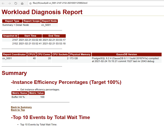 postgres=# select generate_wdr_report(2147, 2152, 'summary', 'cluster', '');