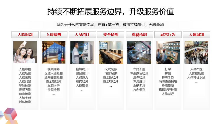 华为云上不仅有自研的算法,还有开放的算法商城,有很多的第三方算法,这些算法是持续演进,无限叠加的。我们坚信只有把更多视频低成本的接入到我们的云上,才会创造更多的价值。那么接下来我们可以看一个小视频,看看华为云视频接入服务怎么样能够很轻松的让视频摄像头的内容上云。