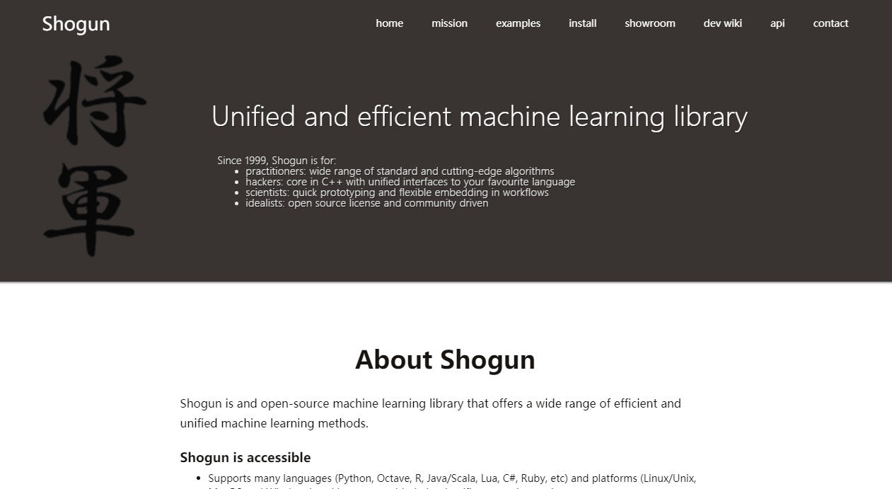 Shogun 是一个开源机器学习库,提供了广泛的高效统一的机器学习方法。
