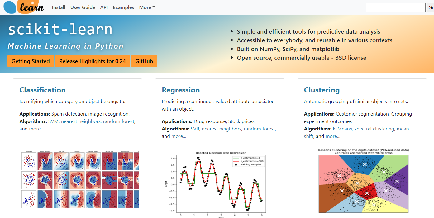 一个简单高效的预测数据分析工具;基于 NumPy、SciPy 和 matplotlib 构建 ;开源,可商用 - BSD 许可。
