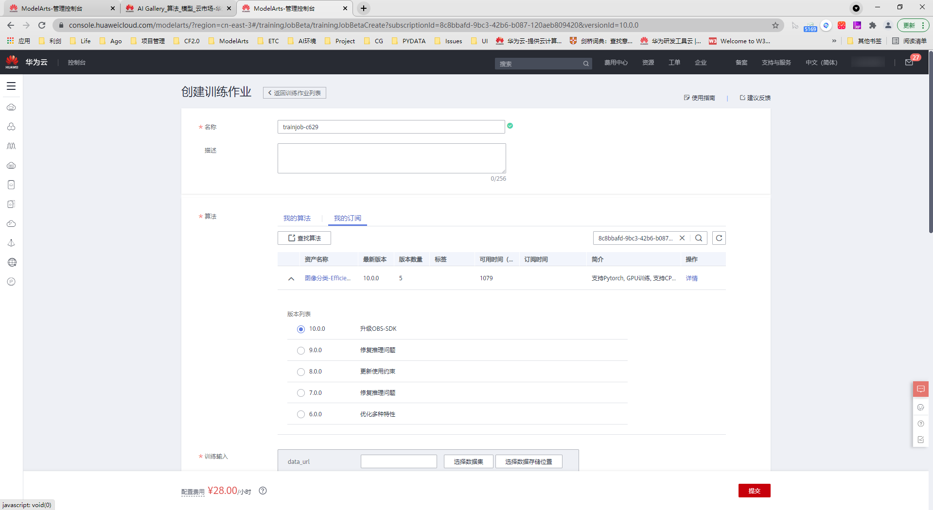 【ModelArts】【StepByStep】如何订阅一个算法去创建训练作业