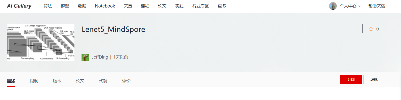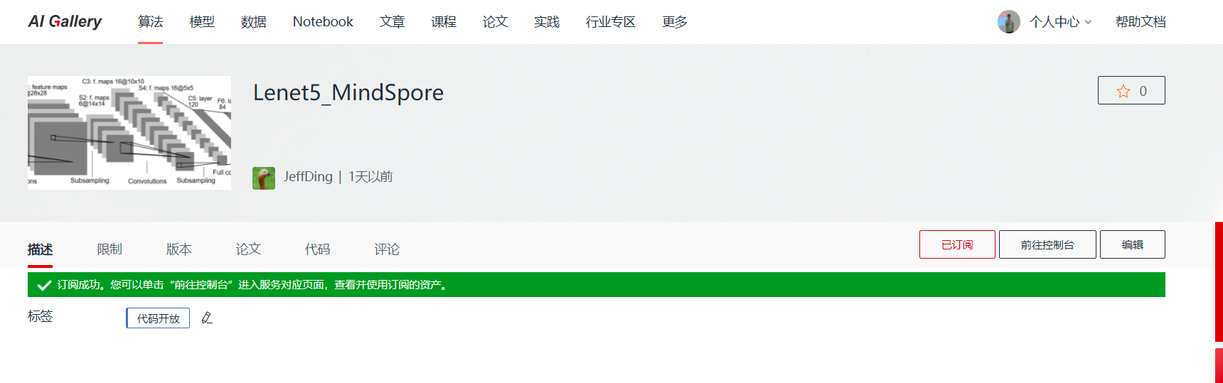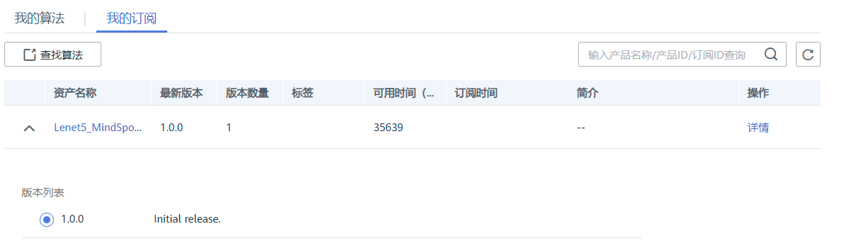 点击链接进入到算法订阅界面,点击【订阅】按钮即可完成订阅。