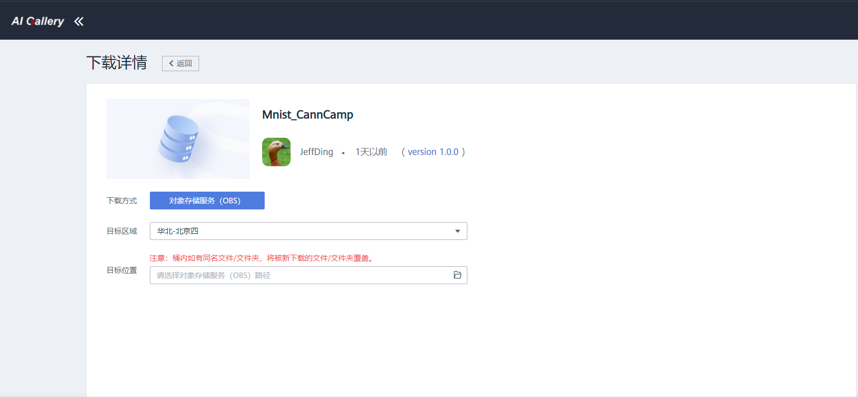 点击页面上的【下载】就可以将数据集下载到我们的OBS中