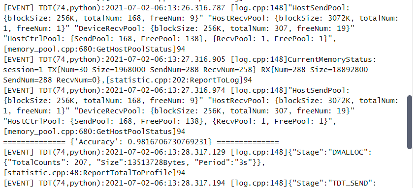 全部完成后和前面一样点击提交开始模型验证阶段的代码运行,当看到日志区域出现Accuracy的时候整个验证就算完成了,一般来说不需要改参数精度基本都在98以上。