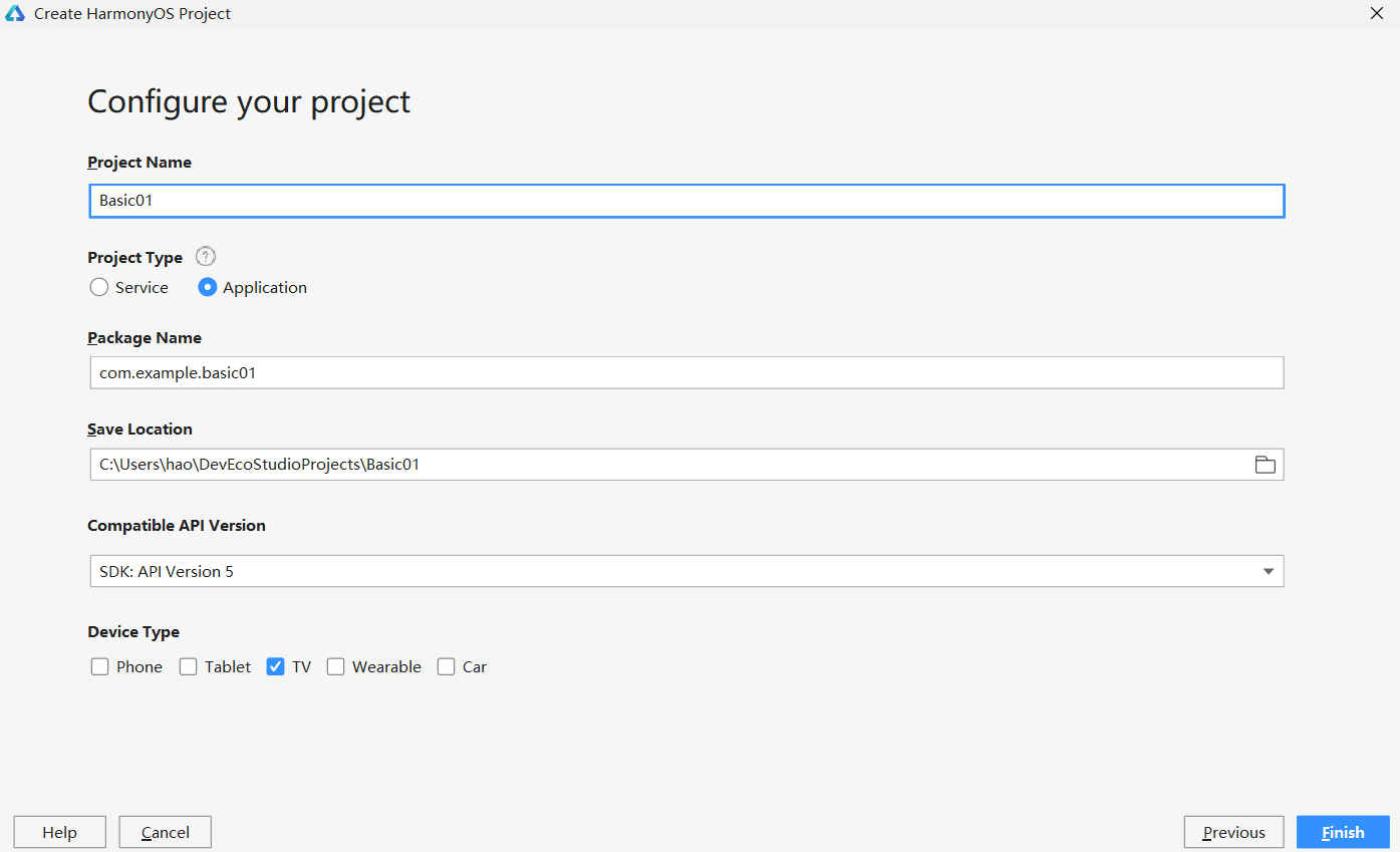 API的version有4和5可以选择,选个5吧;有界面Project type要选application